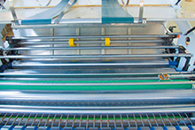 同步輸送帶加上動(dòng)態(tài)側(cè)規(guī)相結(jié)合,確保紙張?jiān)谛羞M(jìn)過程中實(shí)現(xiàn)自動(dòng)定位,同時(shí)可不停機(jī)調(diào)整定位精度。