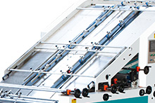 上下層底紙輸送均采用伺服電機(jī)與高強(qiáng)真空吸附相結(jié)合,確保瓦楞紙輸送精、準(zhǔn)、快。